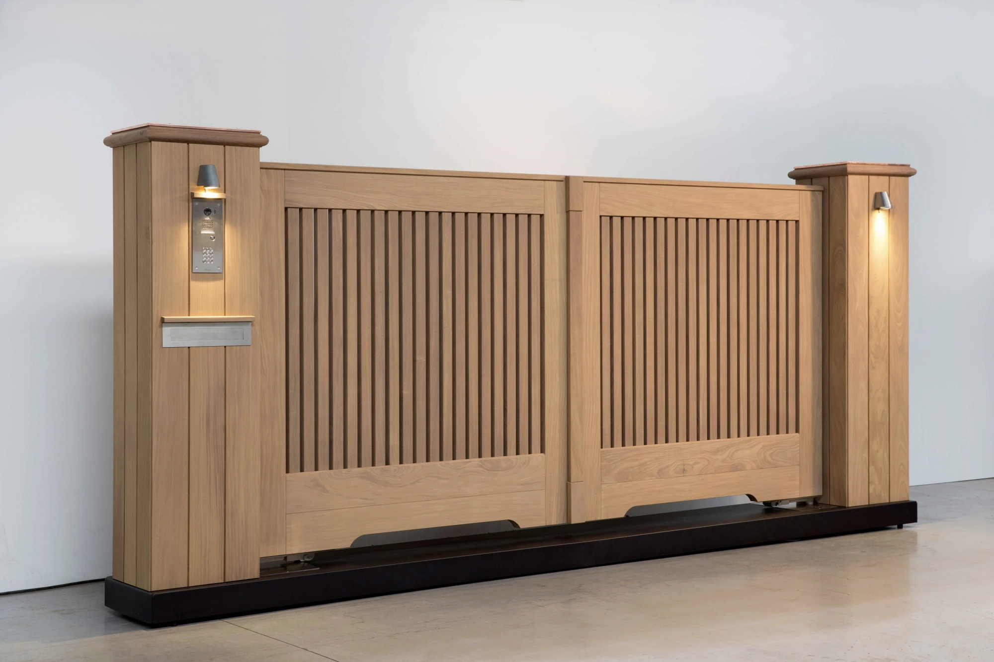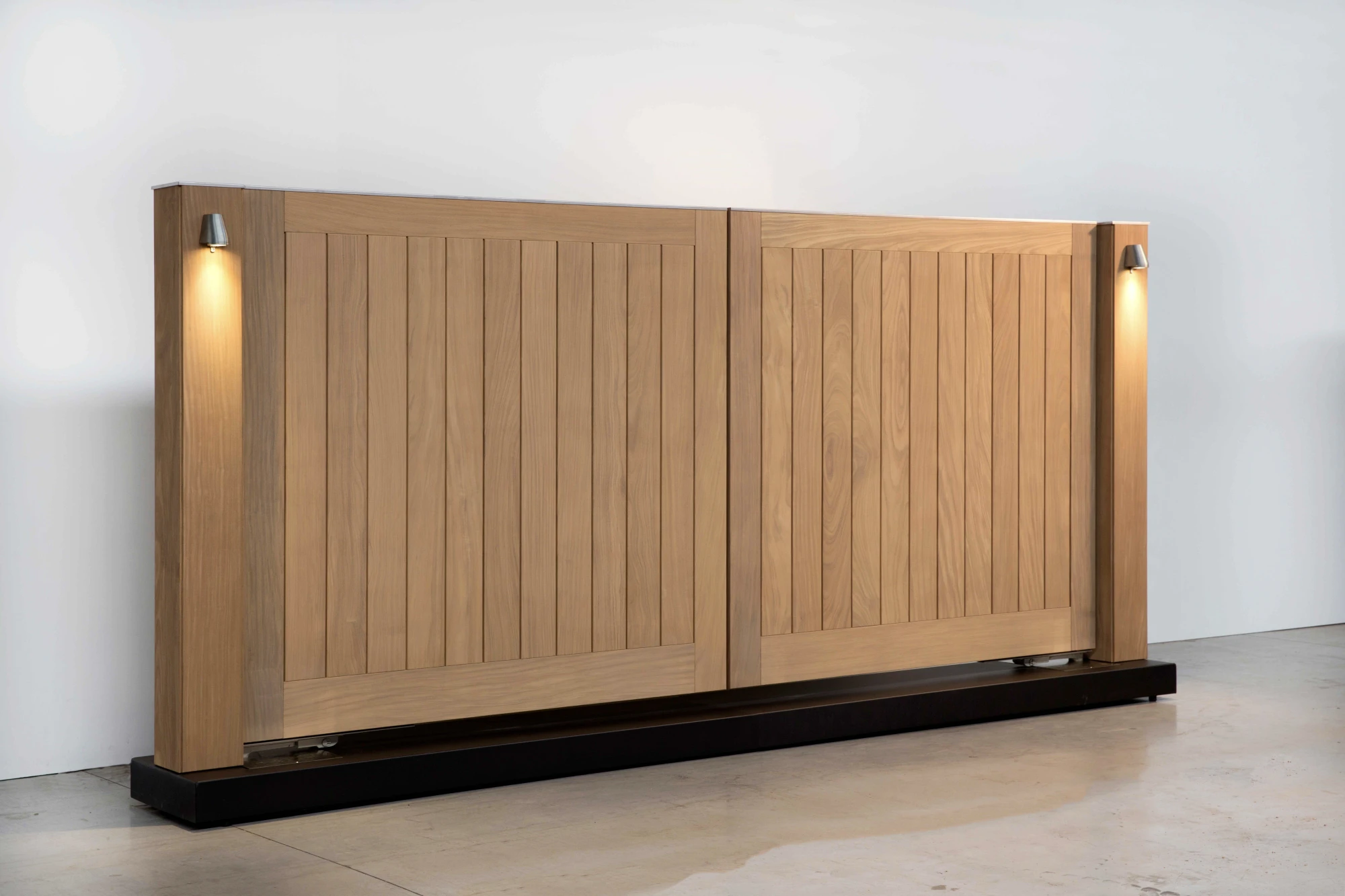 Les portes de jardin en bois de Pouleyn bénéficient d’une automatisation parfaitement optimisée. Elles offrent un démarrage et une fermeture en douceur, avec un fonctionnement silencieux, ainsi qu’un système de détection de collisions intégré.